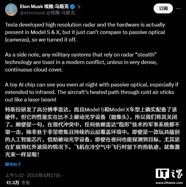 IT之家 8 月 28 日消息,特斯拉首席执行官埃隆・马斯克过去经常就激光雷达发表自己的观点,近日他再次聚焦该技术的短板,并解释了为何特斯拉始终选择以摄像头为核心的感知方案。