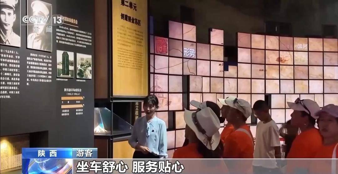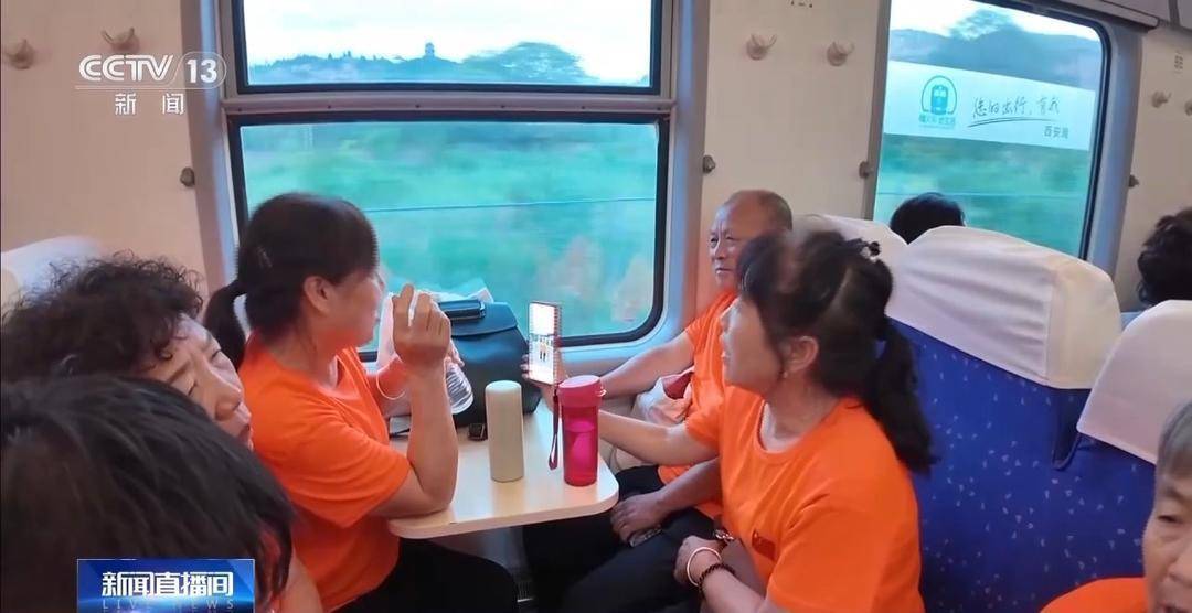 在陕西西安开往照金的红色旅游专列上,银发旅客载歌载舞,沿途从车站到景区的全流程,都做了适老化设计,开通绿色通道,配备专人引导,为老年人节省走路的时间。