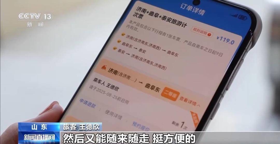 旅客 王德欣:我的票里有济南、曲阜和泰安这三个行程。这样买的话,比平时能节省二三十块钱,觉得又不用分开买那么麻烦,又能随来随走,挺方便的。